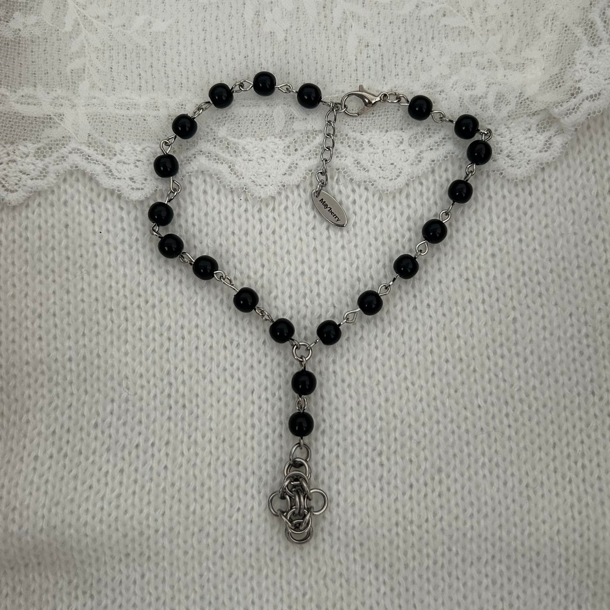 Gorgeous handmade beaded anklet with chainmail drop charm